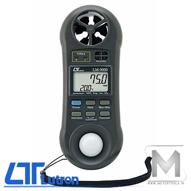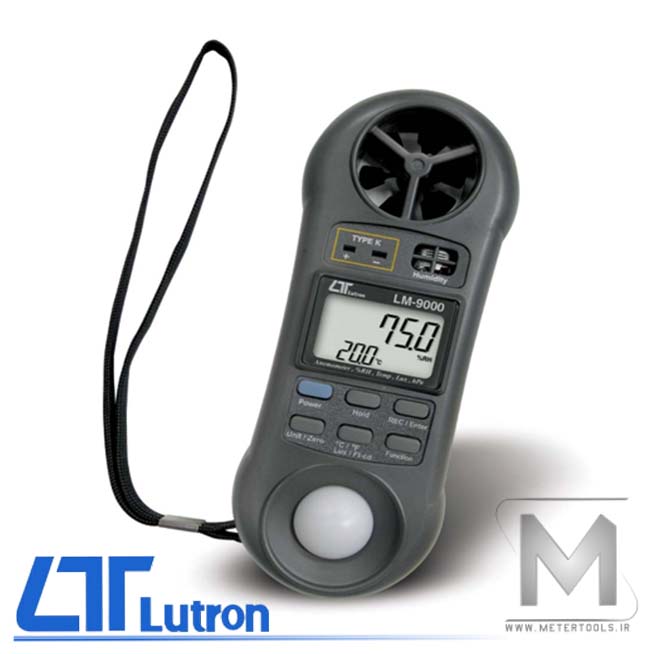 مولتی فانکشن Lutron LM-9000، جهت اندازه گیری سرعت باد، فلو هوا، رطوبت، دما و نقطه شبنم، اندازه گیری روشنایی(لوکس) و فشار به صورت همزمان مورد استفاده قرار میگیرد.