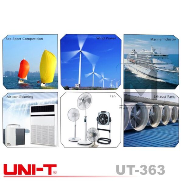 ابزار آنمومتر یا باد سنج UT363BT یک تستر دمای هوا و سرعت سنج باد است. این دستگاه سبک وزن مجهز به آخرین تکنولوژی حسگر مگنتیک است که توانایی نمایش مستقیم سرعت جریان هوا را در نمایشگر LCD خود داراست. UT363BT ابزاری عالی برای رویدادهای ورزشی، اندازه گیری باد، جهت یابی، HVAC تهویه مطبوع و دیگر مناطق می باشد.