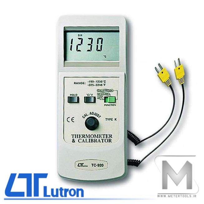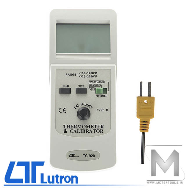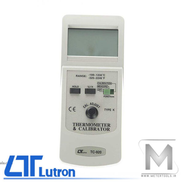 کالیبراتور دما ترموکوپل تیپ K لوترون Lutron TC-920 جهت اندازه گیری و کالیبراسیون ترموکوپل نوع k استفاده می شود کالیبراتور دما دستگاهی است که جهت کنترل و صحت مقادیر اندازه گیری شده توسط تجهیزات اندازه گیری دما بکار می روند. کالیبراتورهای دما به کمک سنسور های دمای ترموکوپل یا RTD، امکان مقایسه ی دمای واقعی با مقادیر اندازه گیری شده با دقت بالا را برای ما فراهم می کنند. خصوصیت بسیار مهم کالیبراتورهای دما دقت اندازه گیری آنها می باشد و یکی از فاکتورهای اصلی تعیین کننده قیمت کالیبراتور دما می باشد.