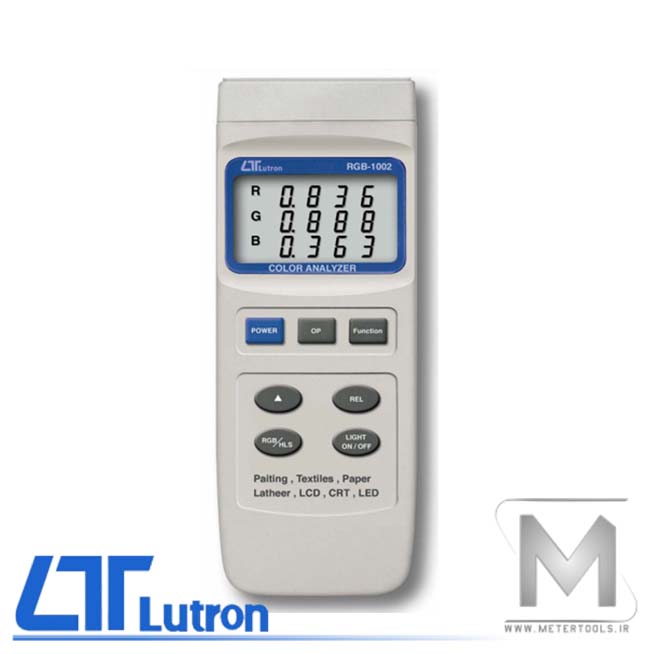 آنالایزر رنگ Lutron RGB-1002، آنالایزر مجهز به پراب مجزا و خارجی برای اندازه گیری هندسه رنگ در زوایای 0 تا 45 درجه است. دستگاه رنگ سنج لوترون با استفاده از تکنولوژی ریزپردازنده های دقیق به تجزه و تحلیل و تعیین طیف رنگ ها ی نمونه میپردازد. تکرار پذیری بسیار عالی ناشی از استفاده از روش تجزیه و تحلیل طیف سنجی است که در این آنالایزر رنگ بکار رفته. امکان اندازه گیری و آنالیزر رنگ تنها با فشردن ماشه تفنگی دستگاه که مقدار رنگ را ( R ،G ،B or H ،S ،L ) را نمایش میدهد.