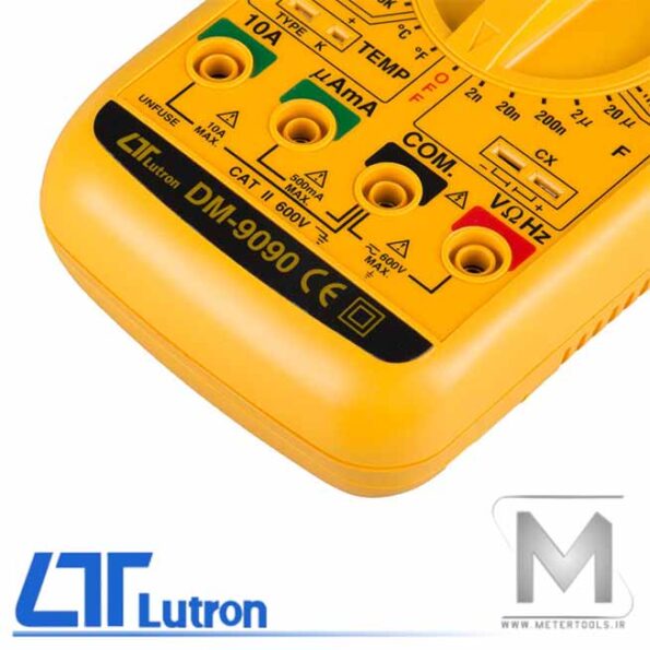 مولتی متر دیجیتال لوترون مدل LUTRON DM-9090 ، مولتی متر یک ابزار بسیار کاربردی در زمینه برق و الکترونیک می باشد که تکنسین های برق و الکترونیک به واسطه آن ، کمیت های الکتریکی شامل ولتاژ ، جریان و مقاومت الکتریکی را اندازه گیری می نمایند. درمدل های جدید مولتی متر،امکاناتی مانند تست اتصال کوتاه ، اندازه گیری ظرفیت خازن و سلف ، تست قطعات الکترونیکی مانند ترانزیستور و دیود و اندازه گیری دما اضافه شده است.