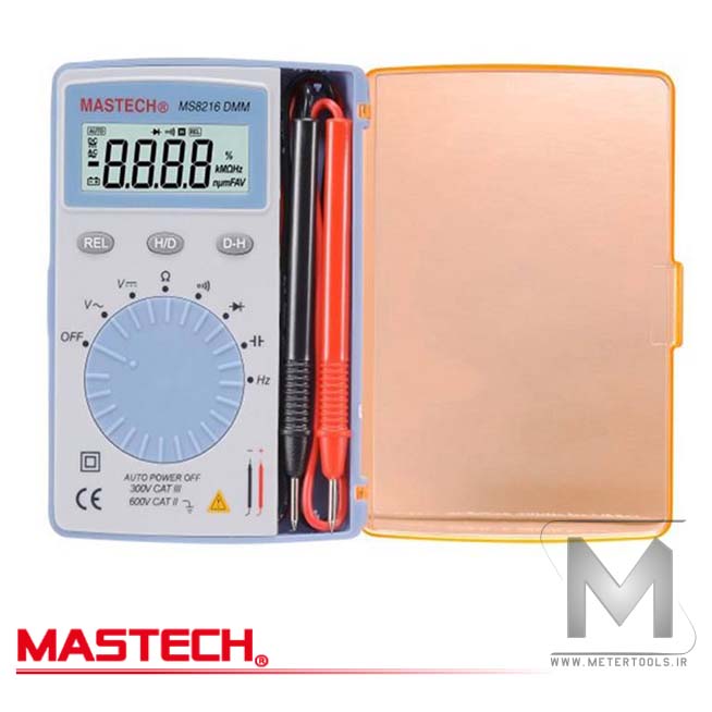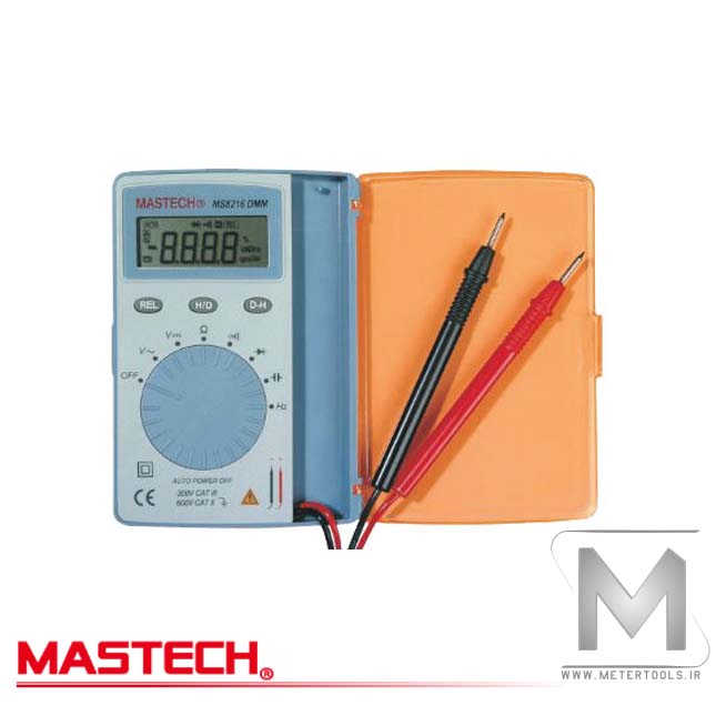 مولتی متر MS8216 با شکل و ابعادی مشابه یک ماشین حساب کوچک ساختهشده است و دارای یک پراب است که با اتصال هم زمان آن و نوک دستگاه به محل مورد نظر میتوانید اندازهگیری را انجام دهید. نحوه نمایش مقادیر در این دستگاه بهصورت دیجیتال است. با استفاده از این دستگاه میتوان مقاومت، ولتاژ و جریان المانها الکترونیکی را بهراحتی اندازهگیری کرد.
