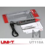 مولتیمتر نوع مدادی سری UT118 دارای تابع شمارش 3000 بیتی است. مدار دستگاه با IC ویژه مولتیمتر و با عملکرد بالا به عنوان هسته اصلی طراحی شده. این دستگاه هوشمند است و دارای دقت و عملکرد بالاست. UT118C برای اندازه گیری و تست ولتاژ AC/DC، تابع EF (UT118B)، مقاومت، دیود، ظرفیت خازن و تداوم به کار گرفته می شود. سری UT118 دارای عایق دوگانه نیز است.