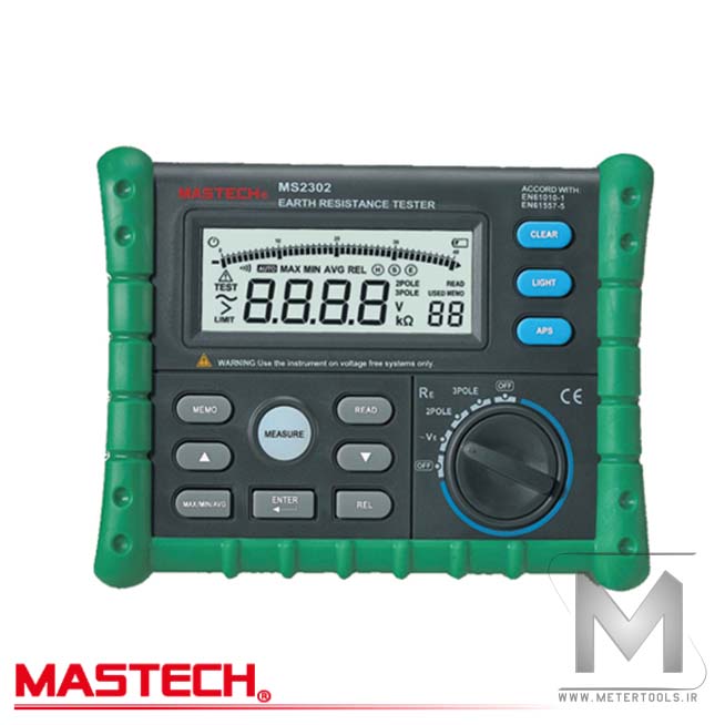 ارت سنج سه سیمه MS2302 یا همان دستگاه تست مقاومت زمین شبیه میگر میباشد که برای اندازه گیری مقاومت طراحی گردیده با این تفاوت که مقاومت زمین بسیار کمتر از عایق های معمول می باشد. این دستگاه مناسب جهت تست ارتینگ و یا سنجش مقاومت زمین برای ساخت و پی ریزی سیستم محافظت الکتریکی زمین، دارای بالاترین کیفیت و دقت اندازه گیری ساخت کمپانی مستک چین است. در این دستگاه رنج اندازه گیری مقاومت زمین 0.01 الی 4000 اهم است.
