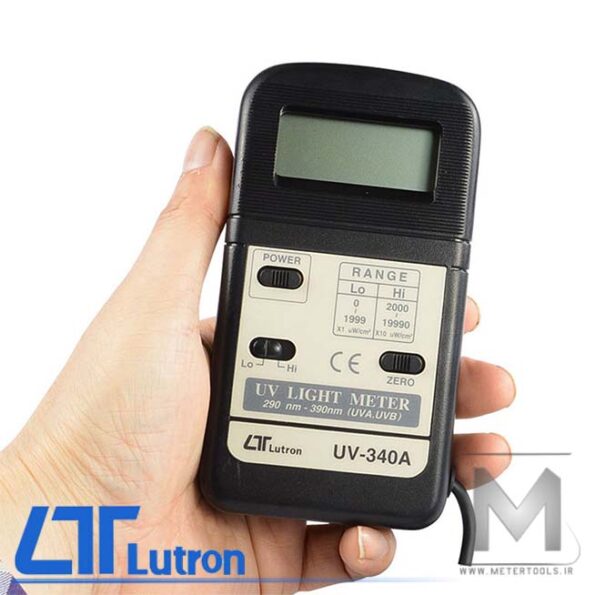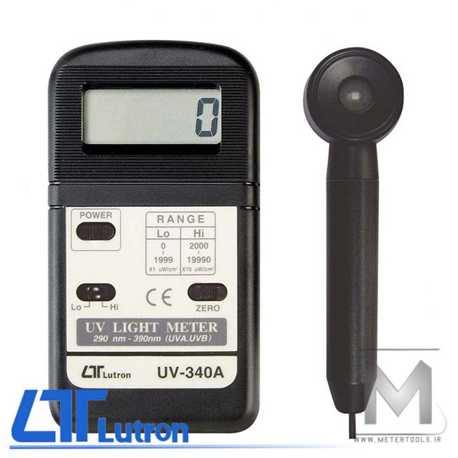 دستگاه یو – وی لایت متر Lutron UV-340، جهت اندازه گیری نور ماورای بنفش کاربرد دارد و همچنین دارای سنسور مجزا با قابلیت اندازه گیری در دو باند UVA & UVB می باشد. در این دستگاه ( uv لایت متر ) اشعه به سه دسته تقسیم می شود: UV-A,UV-B,UV-C. جو زمین شدت ورود اشعه را می گیرد. علاوه بر جو زمین عواملی چون گردوغبار، آلودگی هوا و ابرها نیز از شدت ورود اشعه می کاهند. به همین خاطر کوهنوردان در ارتفاعات کوها بیشتر در معرض تابش این اشعه هستند. همچنین این دستگاه دارای طول موج 290 تا 390 nm است.