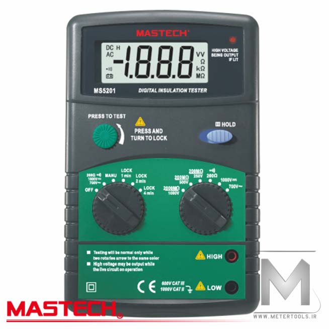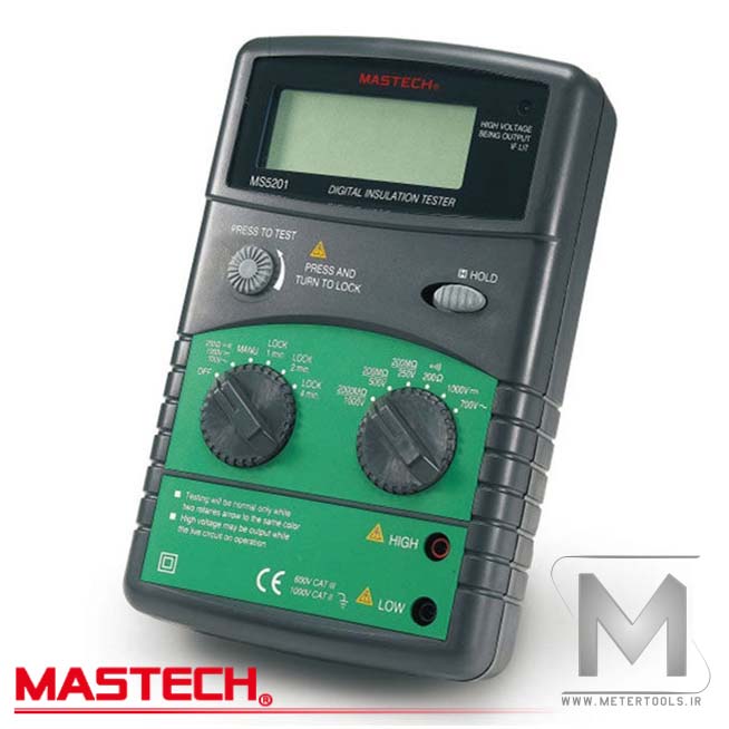 تستر عایق (میگر) MS5201، محصولی با استانداردهای CAT II و CATIII و با گواهینامه RoHS جهت اندازه گیری مقاومت عایق تا 2000 مگااهم مورد استفاده قرار میگیرد. از ویژگی های این محصول، نمایشگر کاهش باتری است که از بوجود آمدن مشکلات احتمالی هنگام اندازه گیری جلوگیری می کند. همچنین در برابر بار اضافی نیز محافظت می شود. قفل اندازه گیری، کمک می کند تا اندازه گیری ها به طور مداوم صورت بگیرد. همچنین ویژگی DATA HOLD، خواندن اطلاعات را تسهیل می کند. ویژگی های دیگر، شامل صفحه LCD بزرگ، هشدار صوتی و تصویری و تست پیوستگی با بوق است. صفحه نمایشگر توانایی نمایش اعداد تا 2000 را دارد که کل رنج اندازه گیری را پوشش می دهد.