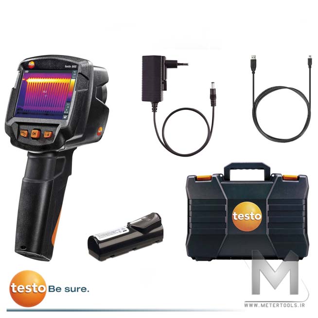 محتویات پکیج کیف حمل - دفترچه راهنما - کابل USB - باتری - testo 865 thermal imager, IRSoft professional software (free download), commissioning instructions, short