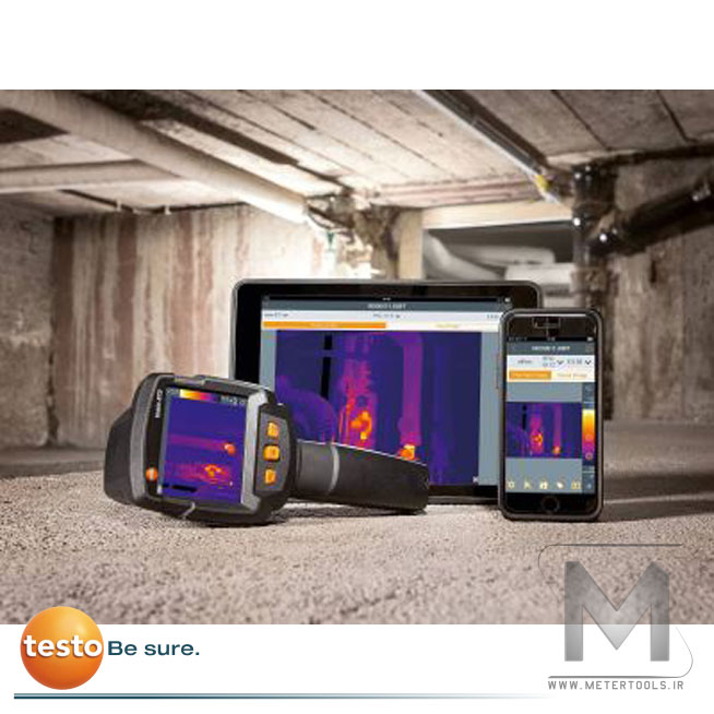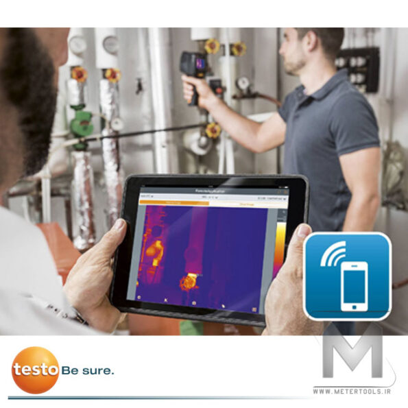 - Testo 872 به صورت بیسیم از طریق WLAN با دستگاه های موبایل و تبلت و TV ارتباط برقرار میکنند. اپ رایگان ترموگرافی تستو برای iOS و Android امکان ذخیره و ارسال گزارشات را به طور همزمان با ارسال ویدئو استریم به شما میدهد و همچنین آنها را به طور آنلاین ذخیره میکند و نیز میتوانید تلفن هوشمند و یا تبلت خود را به عنوان نمایشگر دوم یا کنترل از راه دور استفاده کنید.