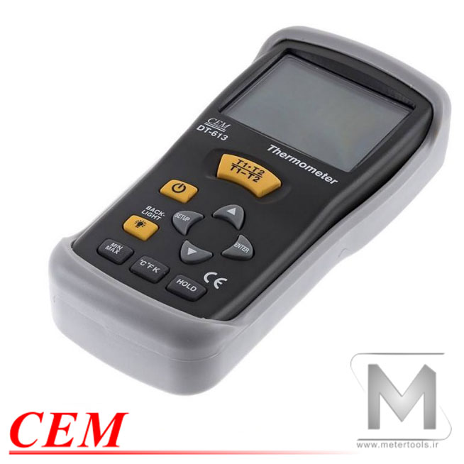 ترمومتر یا دماسنج تماسی (Cocntact Type Thermometer) دو 2 کاناله مدل CEM DT613 با قابلیت اندازه گیری دما منفی 50 تا 1300 درجه سلسیوس میباشد که از طریق دو پراب تماسی تیپ K بصورت همزمان دما را اندازه گیری میکند. این دستگاه با دقت 1.0 درجه سانتیگراد و وضوح رزولوشن 0.1 درجه کمترین درصد خطا را ارائه میدهد. یکسال گارانتی و 10 سال خدمات پس از فروش نیز برای این کالا ارائه میگردد.