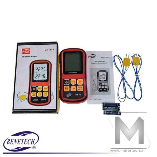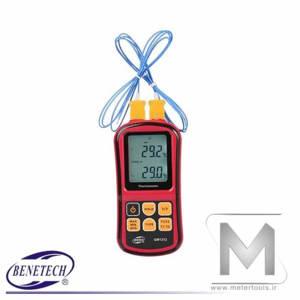 BENETECH GM1312 ترمومتر یا دماسنج تماسی بنتک با دو کانال همزمان و با دقت 0.1 درصد یا 0.1 درجه سانتیگراد میباشد.