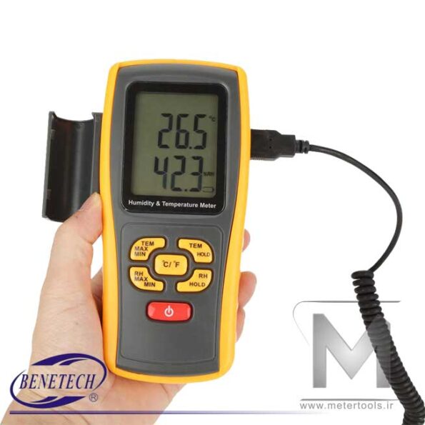 دما و رطوبت سنج بنتک مدل BENETECH یک دما سنج و رطوبت سنج پراب سرخود است که قابلیت اندازه گیری دما از-10 تا 50درجه سانتی گراد و اندازه گیری رطوبت نسبی در رنج 5% تا 98% را دارد. این محصول با کیفیت و ارزان قیمت ساخت کشور چین می باشد.