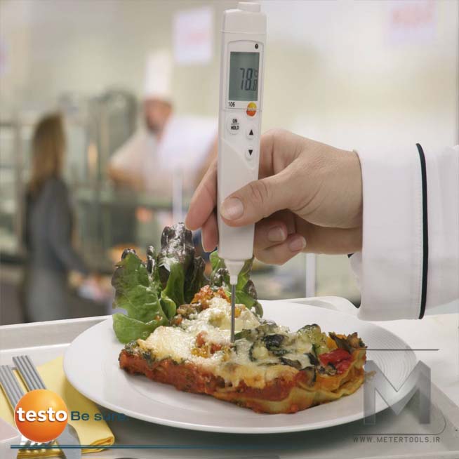 Practical for fast, safe temperature measurements in food controls: with the compact, handy testo 106 food thermometer you will be well equipped to measure the core temperature of products in industrial kitchens, restaurant chains, supermarkets, or while food is in transit.