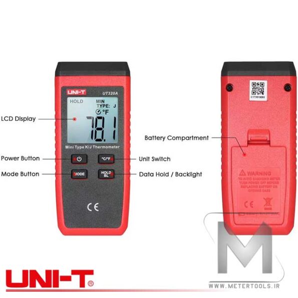 - UT325 یک ترمومتر تماسی دیجیتالی با میکرو پردازنده و پروب دمای ترموکوپلی است.