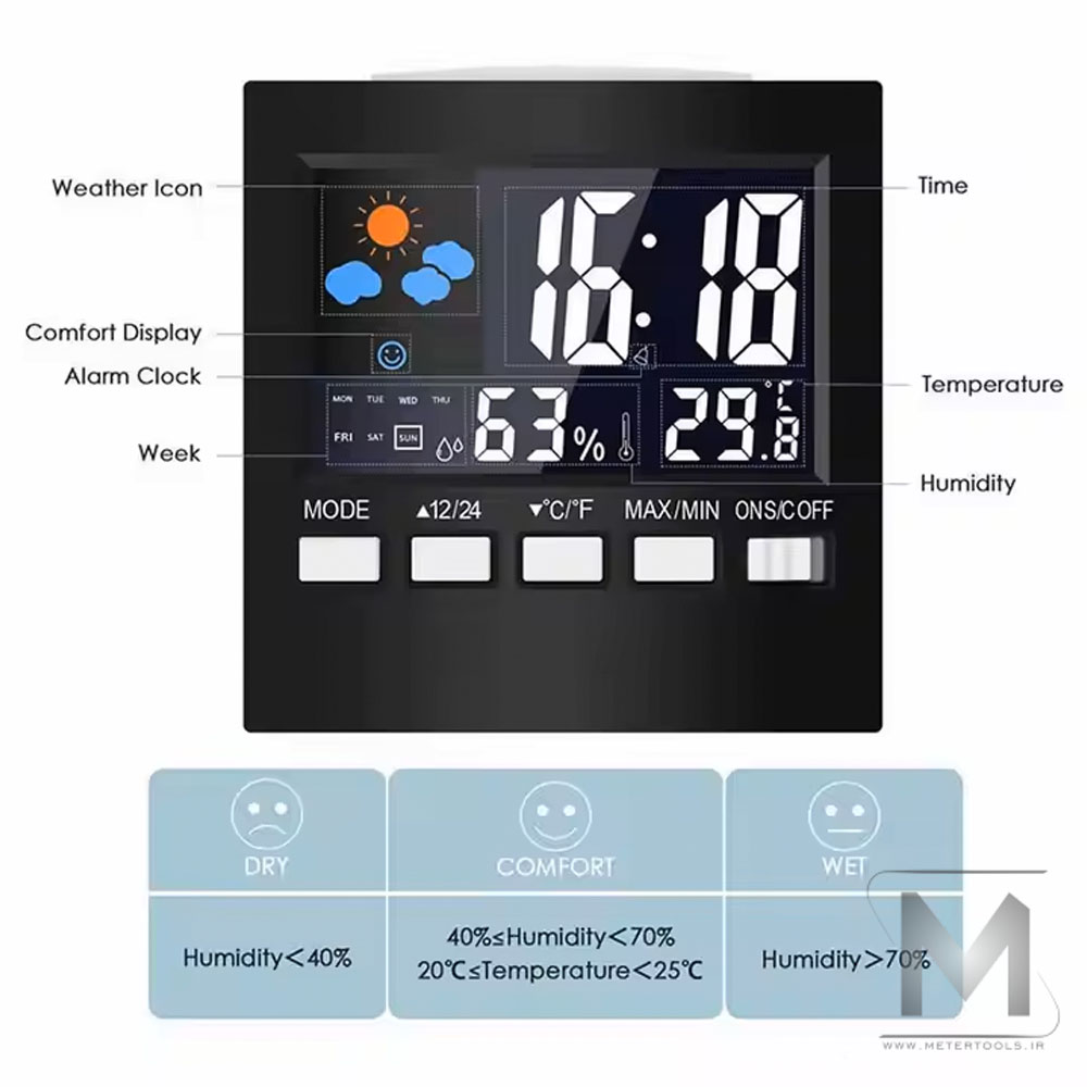 - شناسه: HTC-1Brand: Metertoolsنمایشگر دما، رطوبت و ساعت دیجیتال استعلام بهترین قیمت