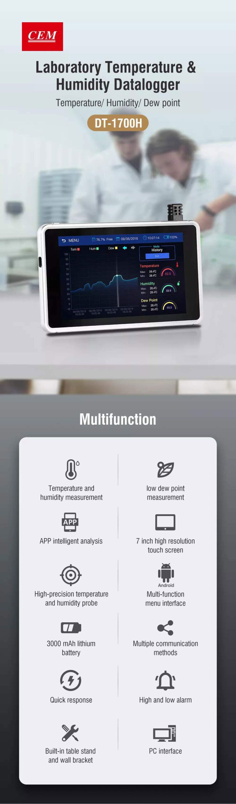DT1700H CEM دیتالاگر دما و رطوبت و نقطه شبنم آزمایشگاهی رومیزی