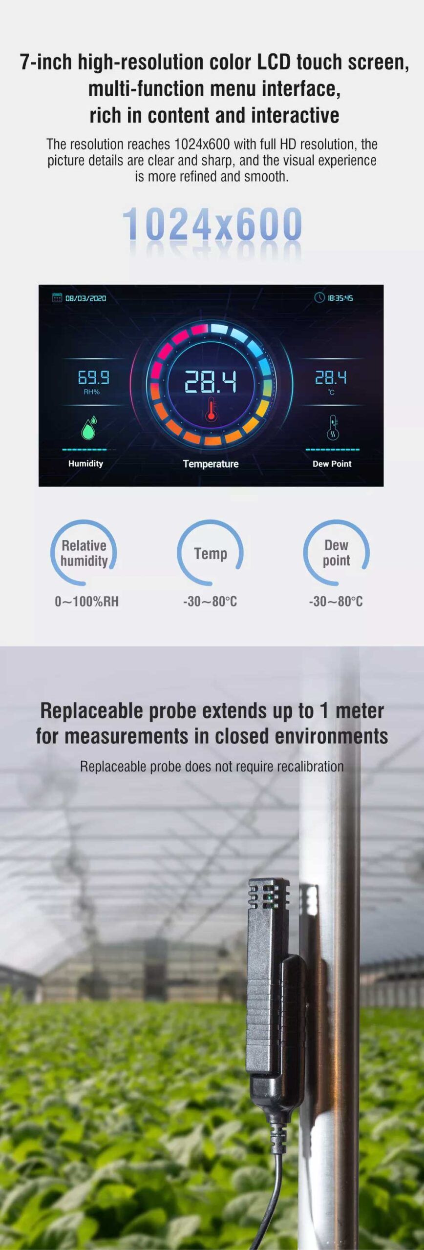 - پراب جداشونده قابل افزایش تا 1 متر برای سنجش در محیط های بسته، بدون نیاز به کالیبراسیون دوباره سنسور پراب