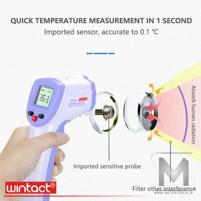 ترمومتر WT3656 از کمپانی نامدار وینتکت یک دماسنج و تب سنج سریع و دقیق جهت اندازه گیری دمای بدن انسان به صورت ایمن در کمتر از 500 میلی ثانیه است. این محصول مناسب برای استفاده در مکان های شلوغ و حساس مانند بیمارستان ها، مراکز و شرکت ها و کارخانجات تولیدی، صنعتی، بهداشتی، دفاتر کار، فروشگاه های بزرگ و کوچک، منازل، عوارضی شهرها و غیره میباشد. محدوده اندازه گیری دما به صورت غیر تماسی از 32 تا 42 درجه سانتیگراد با دقت سه دهم 0.3 است. بهترین فاصله اندازه گیری بدون نیاز به تماس با بدن بین 5 تا 10 سانتیمتر از پیشانی و قسمت های دیگر میباشد.