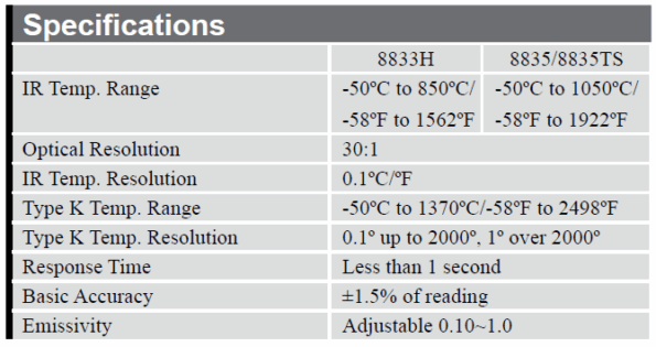 - محدوده دمایی گسترده برای اندازهگیری مطمئن تا 1500 درجه سانتیگراد