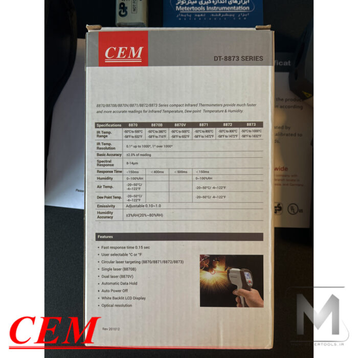 - شناسه: DT811Brand: CEM سم - سی ای امDT-811 دماسنج لیزری 380 درجه استعلام بهترین قیمت