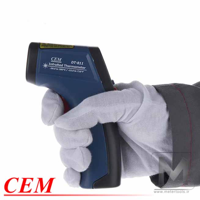 دماسنج لیزری DT-811 ساخت کمپانی CEM و دارای استاندارد CE اروپا است. ترمومتر مادون قرمز DT-811 با دقت بالا قابلیت اندازه گیری دمای سطح اجسام را بدون تماس از 30- تا 380 درجه سانتیگراد دارد.