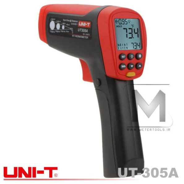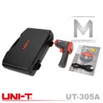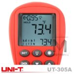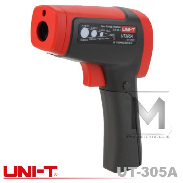ترمومتر لیزری مادون قرمز سری UT-305A قابلیت اندازه گیری دما به وسیله لیزر و یا پروب دما K-Type را داراست و جزء Infrared Thermometer قرار میگیرد. UT-305 دارای نسبت D:S یا Distance to Spot فاصله به نقطه 50:1 است، در نتیجه این دیوایس می تواند محدوده دمای بلندی را با دقت عالی محاسبه کند، UT-305 همچنین دارای 99 مجموعه ذخیره سازی داده ها و نیز امکان انتقال داده ها به USB است. این سری ترمومترها ابزارهای مناسبی هستند برای بازرسی کیفیت صنعتی مانند کارخانجات HVAC و الکترونیک.