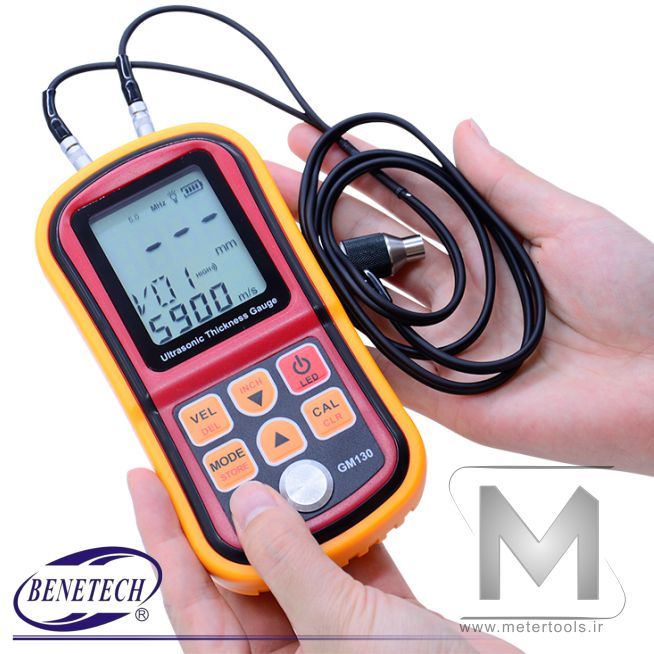 دستگاه GM130 يک ضخامت سنج التراسونيک در محدوده 1.00 ~ 300.0 میلیمتر با وضوح 0.01 تا 0.1 میلیمتر و دقت 1 درصد تا 1 میلیمتر است.
